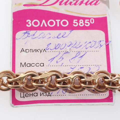Браслет золото 585, общий вес - 15.81 г, чистый вес - 15.81 г, 22 см