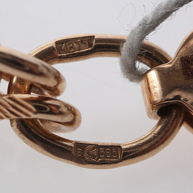 Вставки: НетТолщина, мм: 2.55Ширина, мм: 6.65Клеймо: ДаПлетение: КапризПорван: НетСостояние: бывший в употреблении