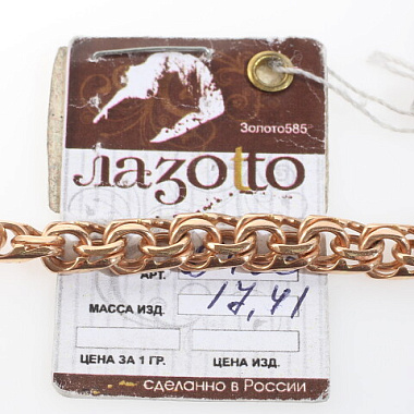 Браслет золото 585, общий вес - 17.41 г, чистый вес - 17.41 г, 22 см