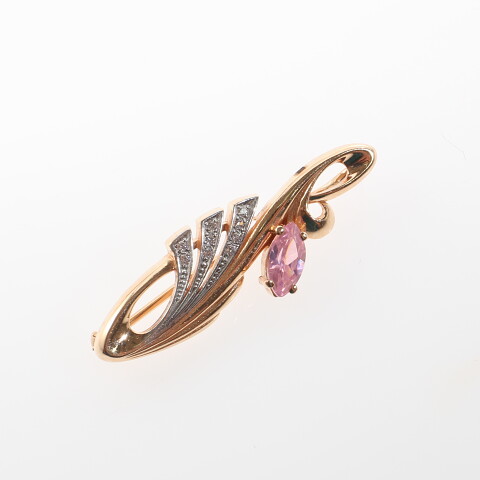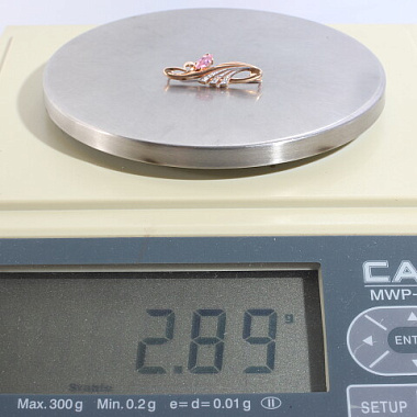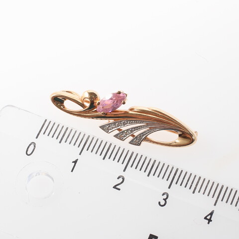 Брошь золото 585, общий вес - 2.88 г, чистый вес - 2.643 г