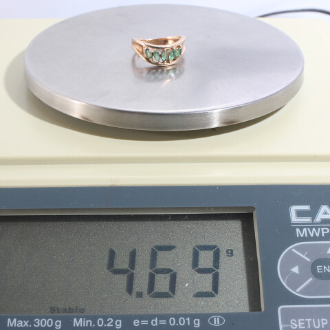 УИН: 6432500710620340Описание вставок: 5 Зеленых недрагоценных камнейОбщий вес: 4.7Чистый вес: 4.225Вес вставок: 0.475Высота, мм: 13Высота шинки, мм: 3