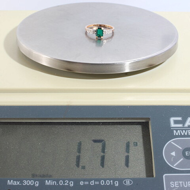 УИН: 6432501557054537Описание вставок: 1 Зеленый недрагоценный камень,14 бриллиантов Кр-17 - 0,056 кар.3/55Общий вес: 1.7Чистый вес: 1.461Вес вставок: 0.239Высота, мм: 7Высота шинки, мм: 1
