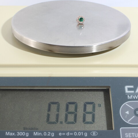 Описание: вид замка - пусетыУИН: 6432501485458310Описание вставок: 1 Зеленый недрагоценный камень,12 Прозрачных недрагоценных камнейОбщий вес: 0.88Чистый вес: 0.672Вес вставок: 0.208Высота, мм: 8