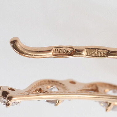 Глубина ушка, мм: 5Вид замка: ПетляВставки: ДаШирина, мм: 5Клеймо: ДаСостояние: бывший в употреблении